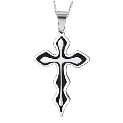 십자가 물결 목걸이(검정색) / 스테인레스 스틸 천주교 기독교