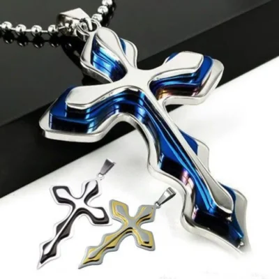 십자가 물결 목걸이(파랑색) / 스테인레스 스틸 천주교 기독교
