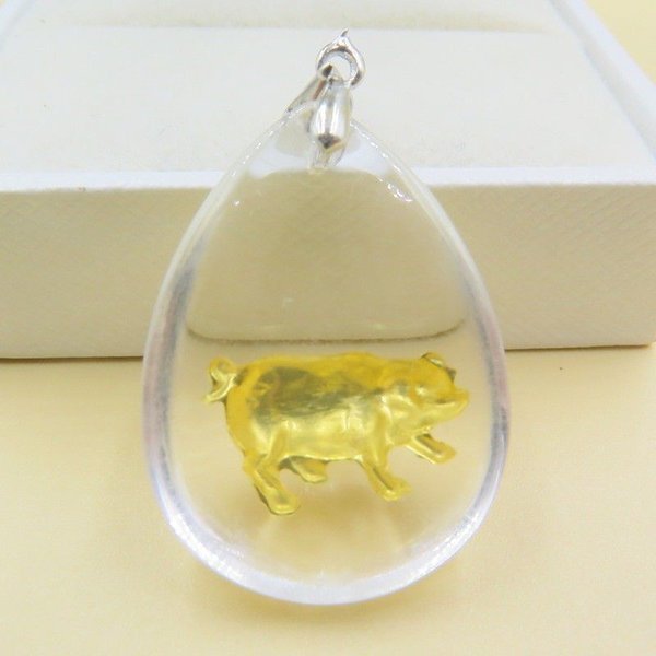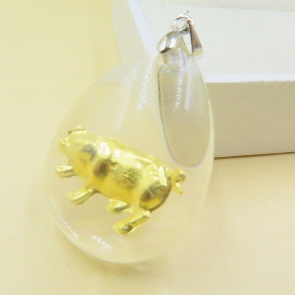 금으로 만든 돼지가 들어있는 목걸이입니다.