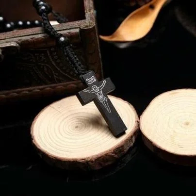 (Random Delivery) Cross Rosary Necklace / Wooden Accessory Gift