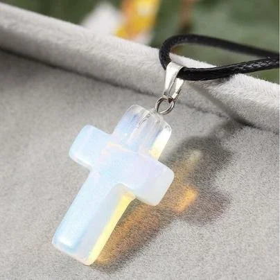 (Random Delivery) Natural Stone Opal Cross Necklace / Gift Decoration Accessories