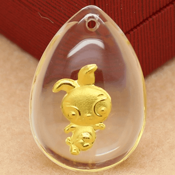 금으로 만든 귀여운 동물이 들어있는 목걸이입니다.