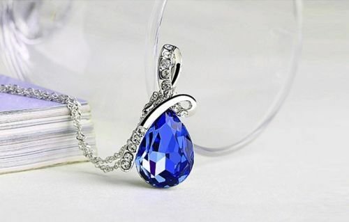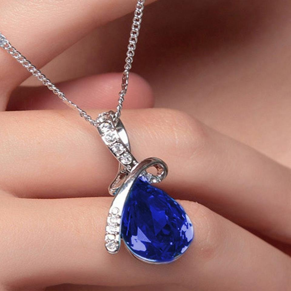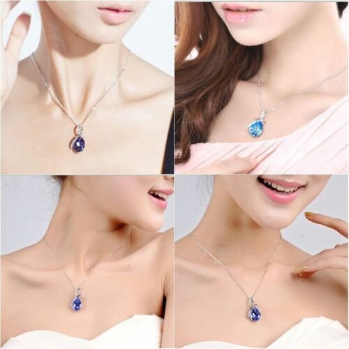 Crystal Water Drop 925 Necklace (Blue) / Chain Gift Jewelry Luxury