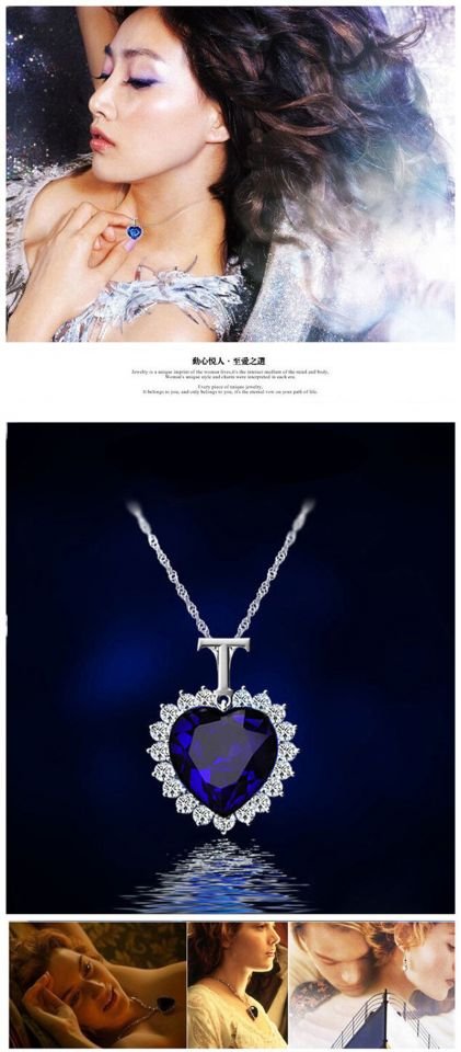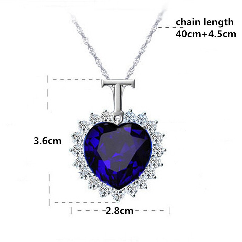 T-type navy Titanic heart necklace / jewelry fashion line Blue stone chain pendant layered
