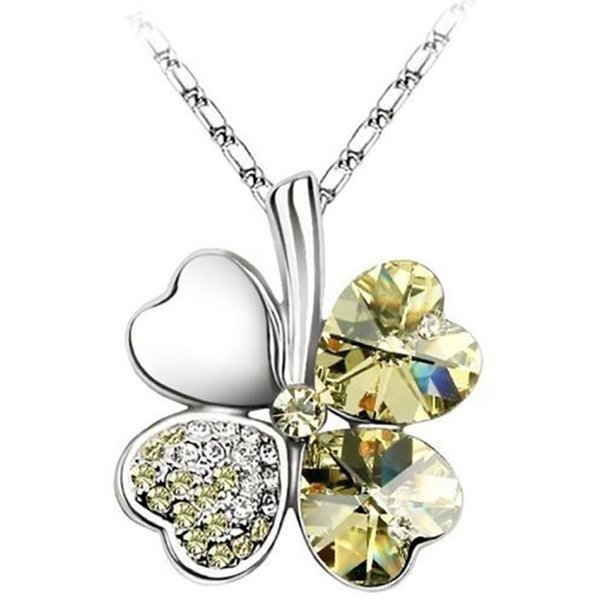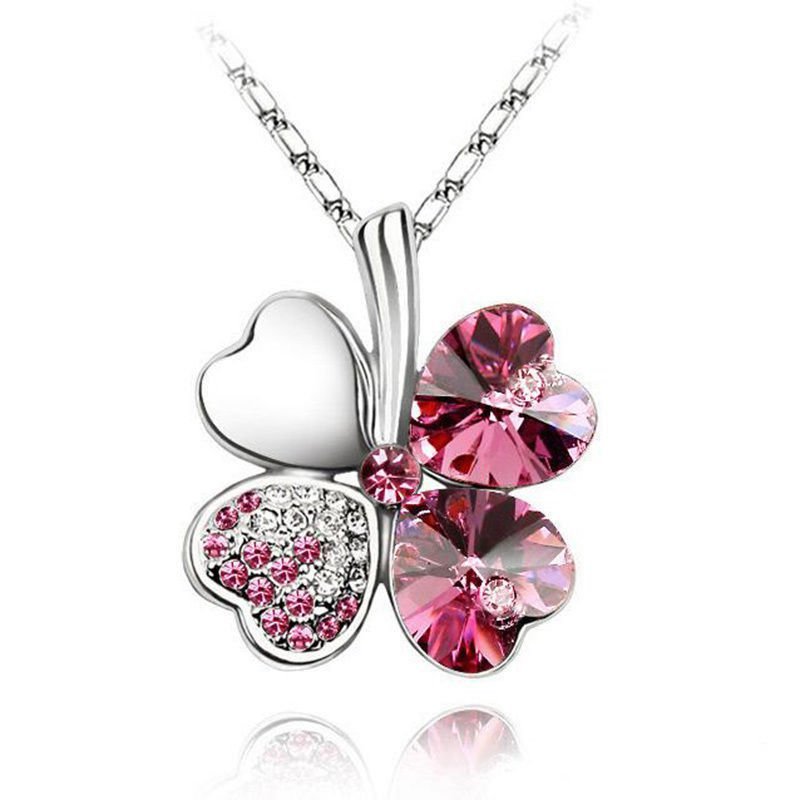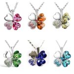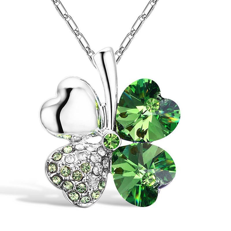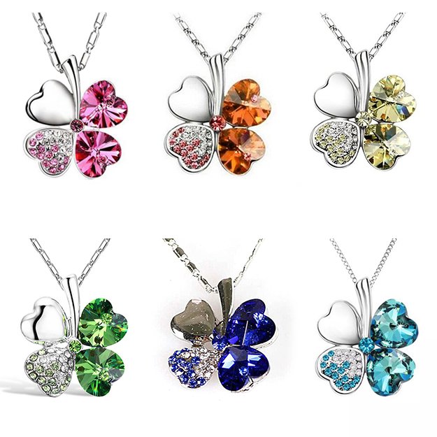 (Randomly Ships) Silver Four-Leaf Clover Necklace / Crystal Line Stone