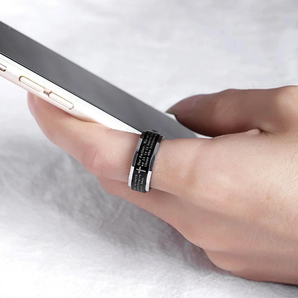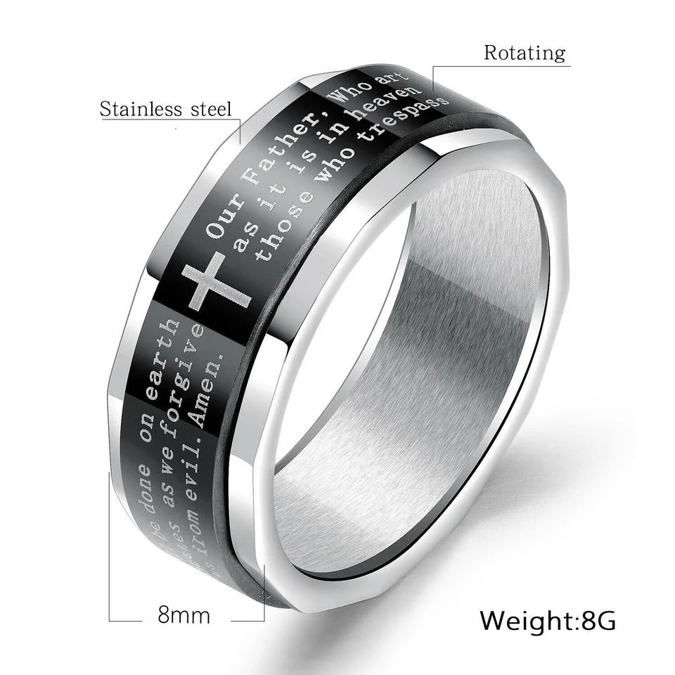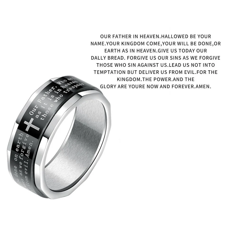 a stainless steel ring (black) Christian / cross Bible verse gift
