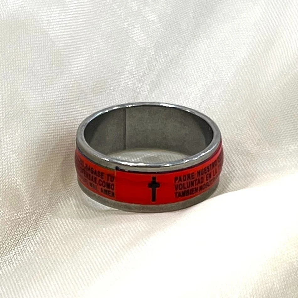 Cross Stainless Ring (Red Black) / Cathedral Church Gift