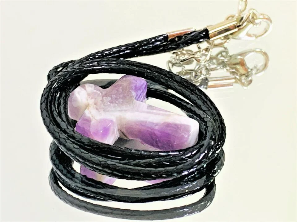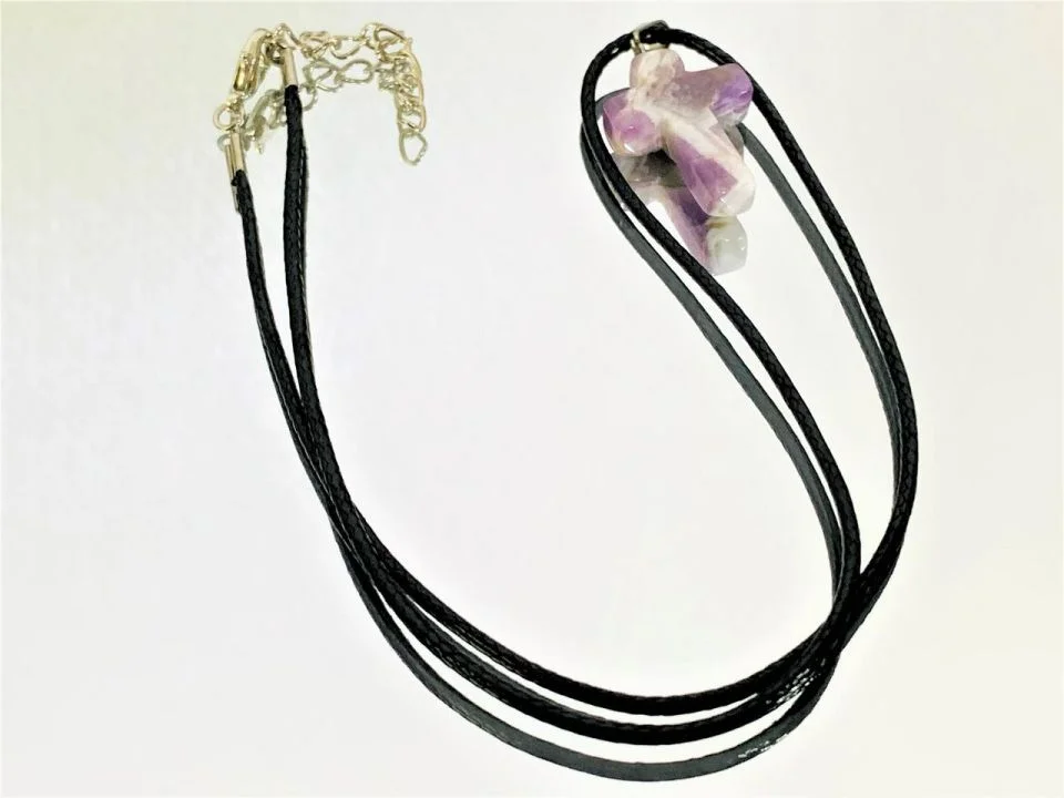 십자가 자연석 오팔 목걸이(보라 흰색) / 선물 장식 액세서리