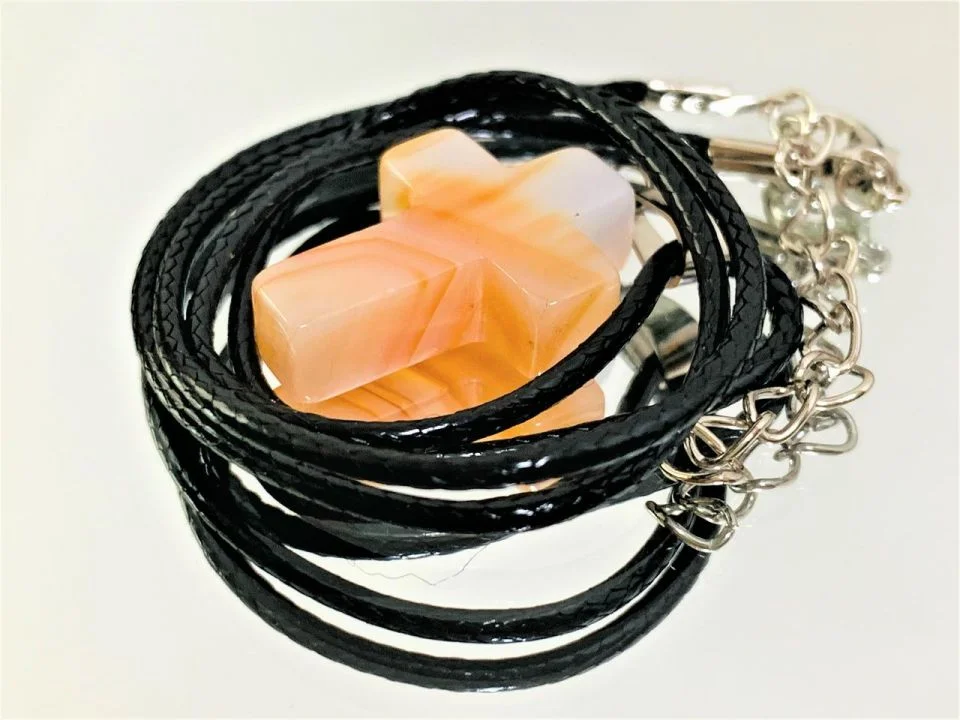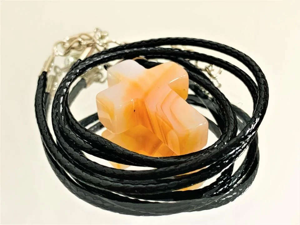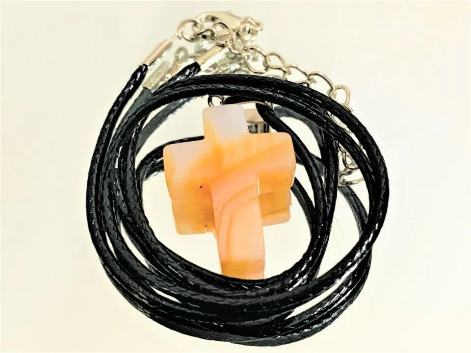 십자가 자연석 오팔 목걸이(주황색) / 선물 장식 액세서리