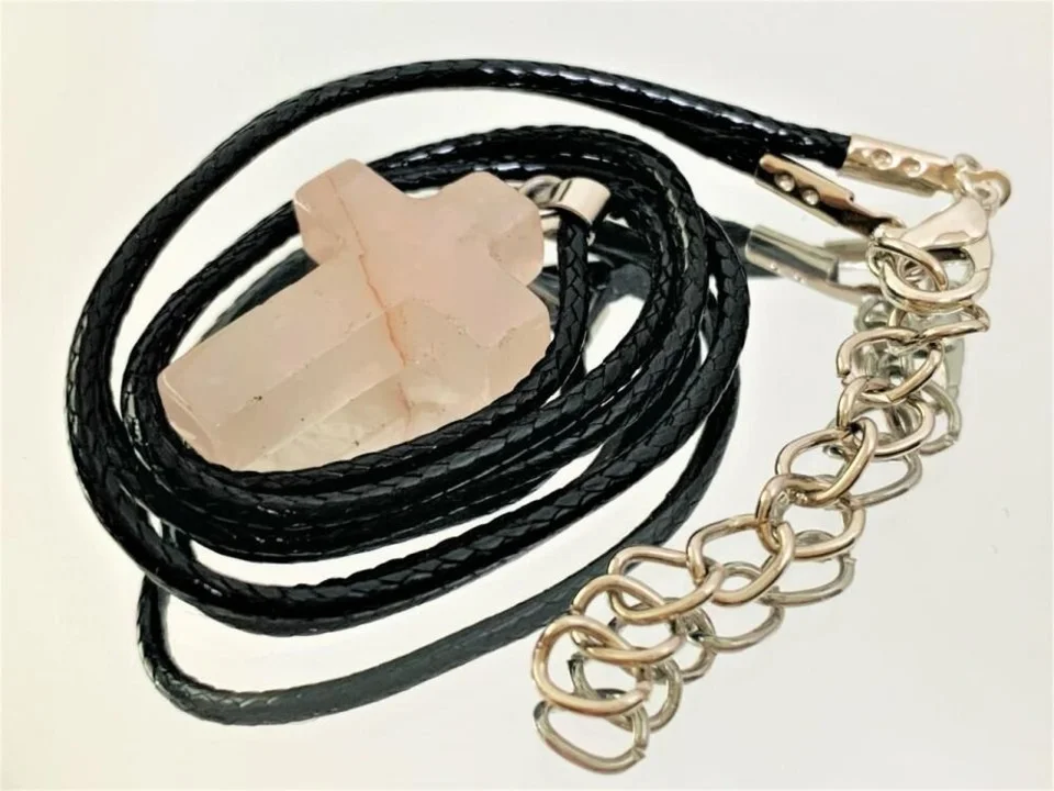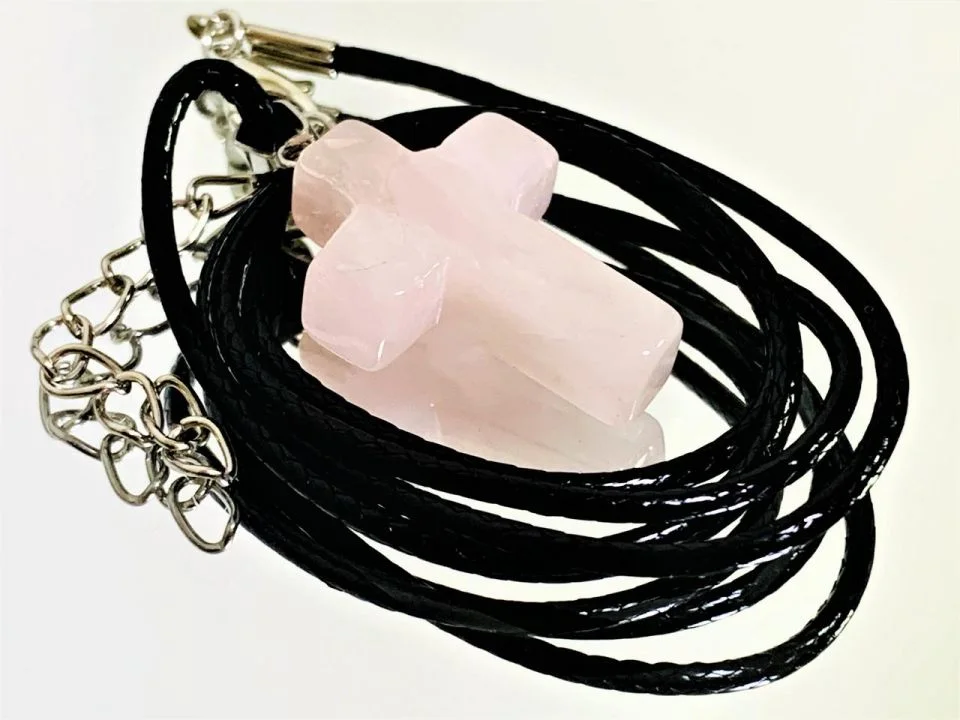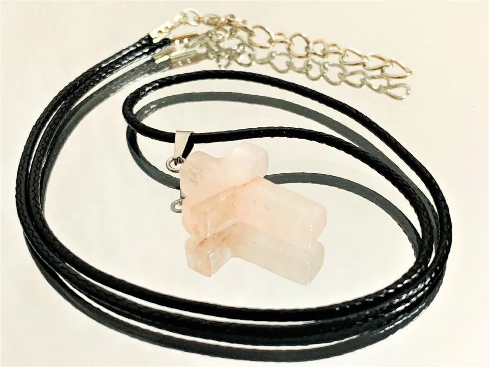 십자가 자연석 오팔 목걸이(핑크색) / 선물 장식 액세서리