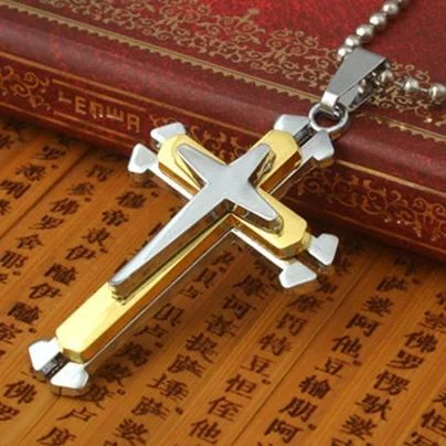 Titanium Cross Necklace (Yellow) / Fashion Commemorative Jewelry Gift