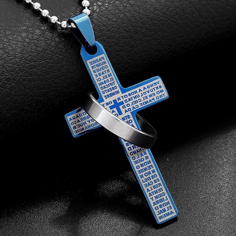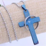 Cross Pendant Necklace (Blue) / Fashion Commemorative Gift Christian Catholicism