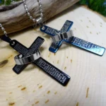 성경 구절이 새겨진 십자가 목걸이입니다.