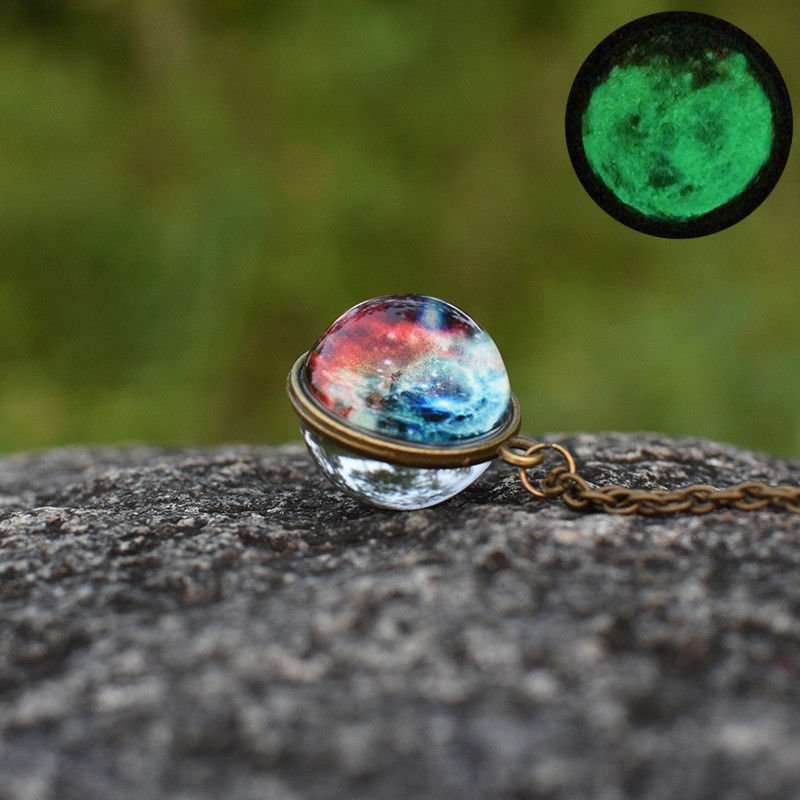 Galaxy Glass Ball Pendant / Glow-in-the-Dark Space Necklace Commemorative Gift