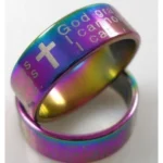 주기도문 십자가 스틸 성경 반지(레인보우) / 티타늄 기독교 천주교