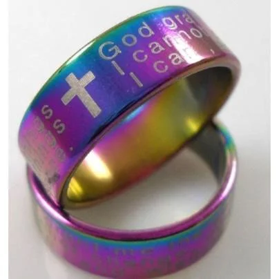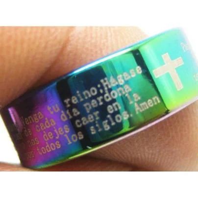 홈 종교 용품 기독교 반지 주기도문 십자가 스틸 성경 반지(레인보우) / 티타늄 기독교 천주교