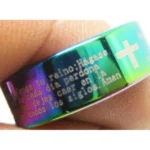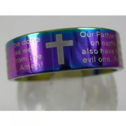 Lord’s Prayer Cross Steel Bible Ring (Rainbow) / Titanium Christian Catholicism
