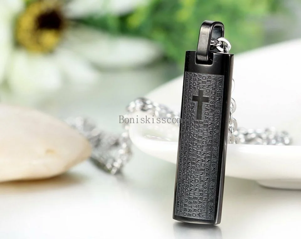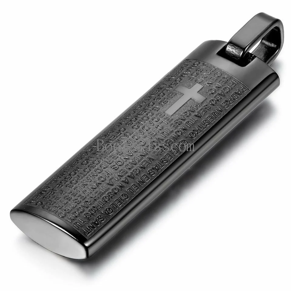 The Lord’s Prayer Titanium Necklace (Black) / Christian Catholic Church Cross