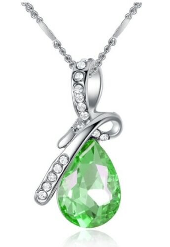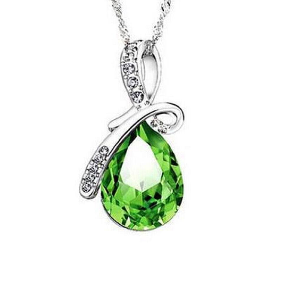 Crystal Water Drop 925 Necklace (Green) / Chain Gift Jewelry Luxury