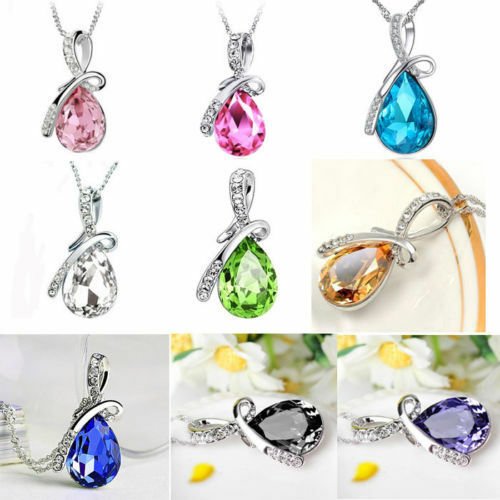 Crystal Water Drop 925 Necklace (Black) / Chain Gift Jewelry Luxury