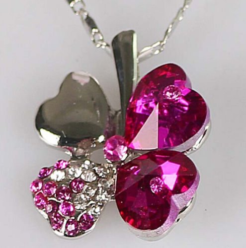 핑크색 실버 네잎클로버 목걸이 / 은 크리스탈 라인 스톤