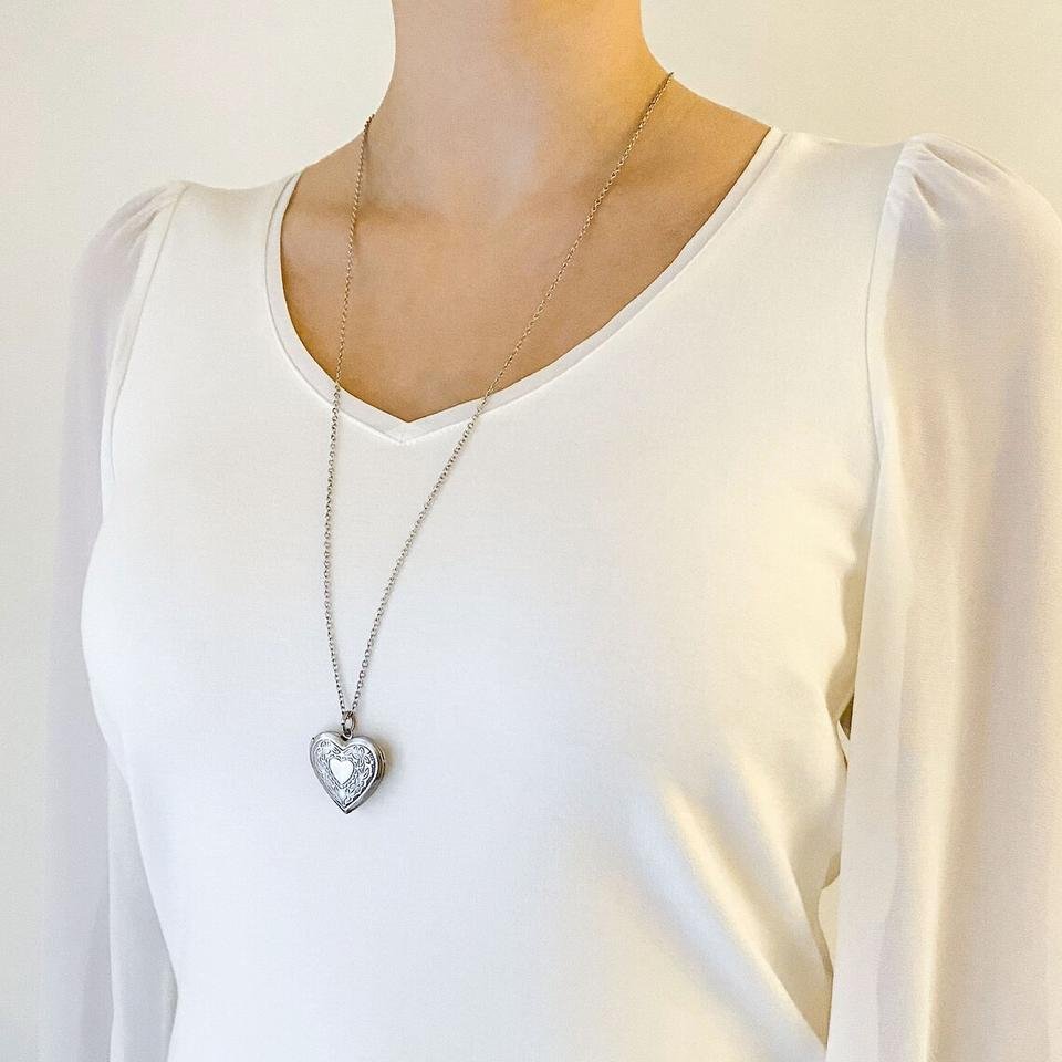 925 Silver Heart Layered Necklace (Photo Holder) / Silver Gift Necklace