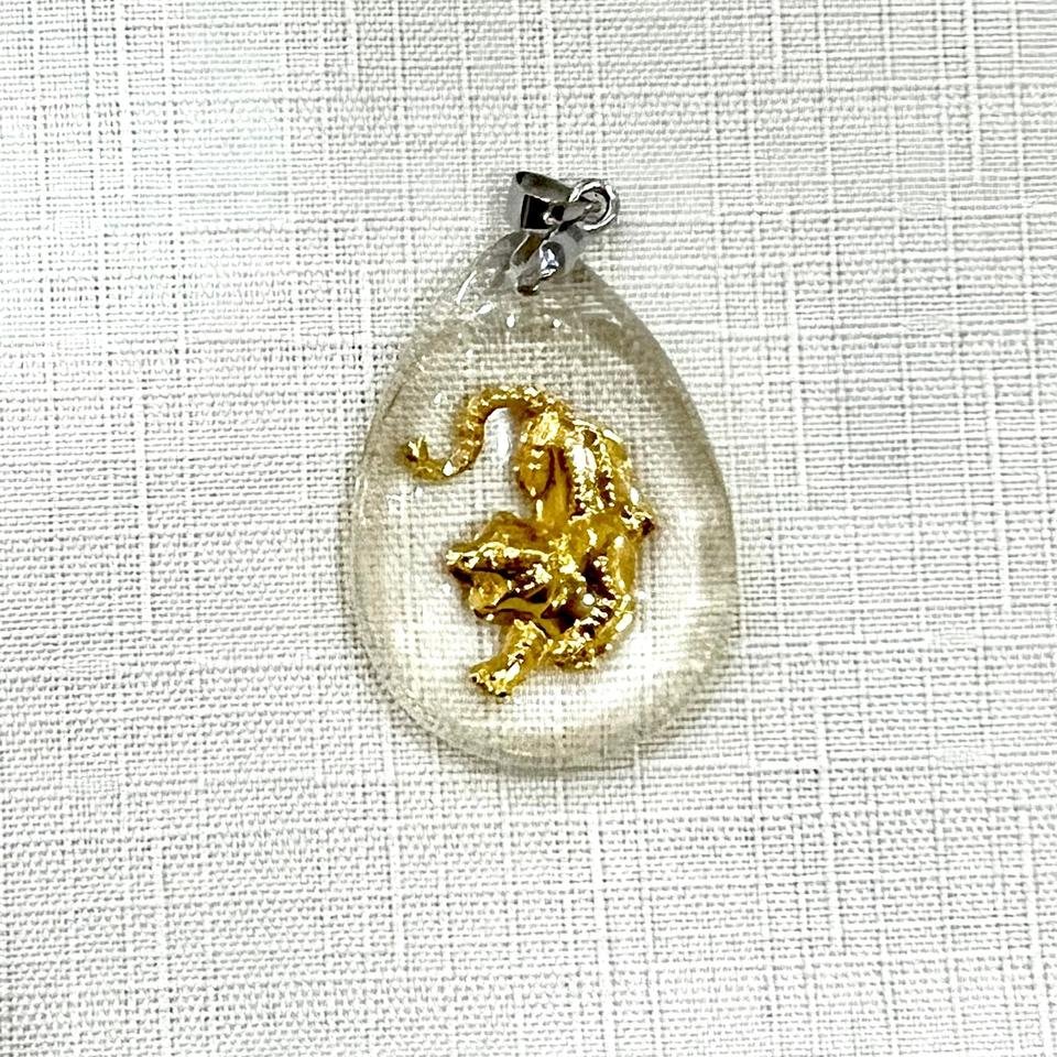 It is a necklace containing a roaring tiger made of gold.