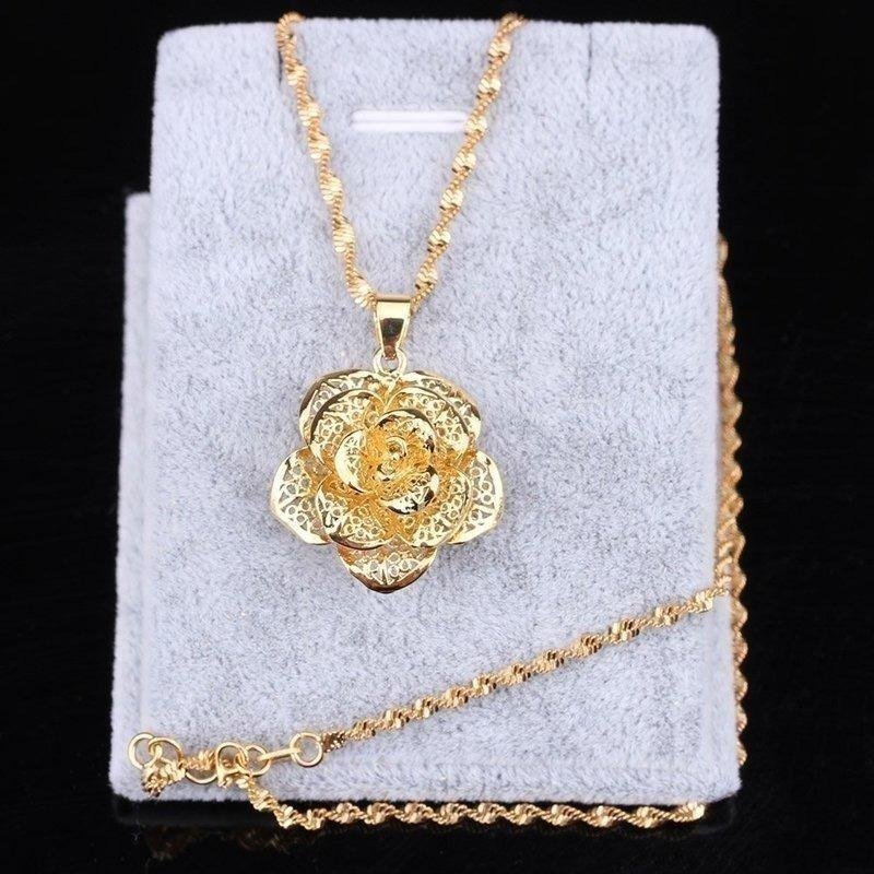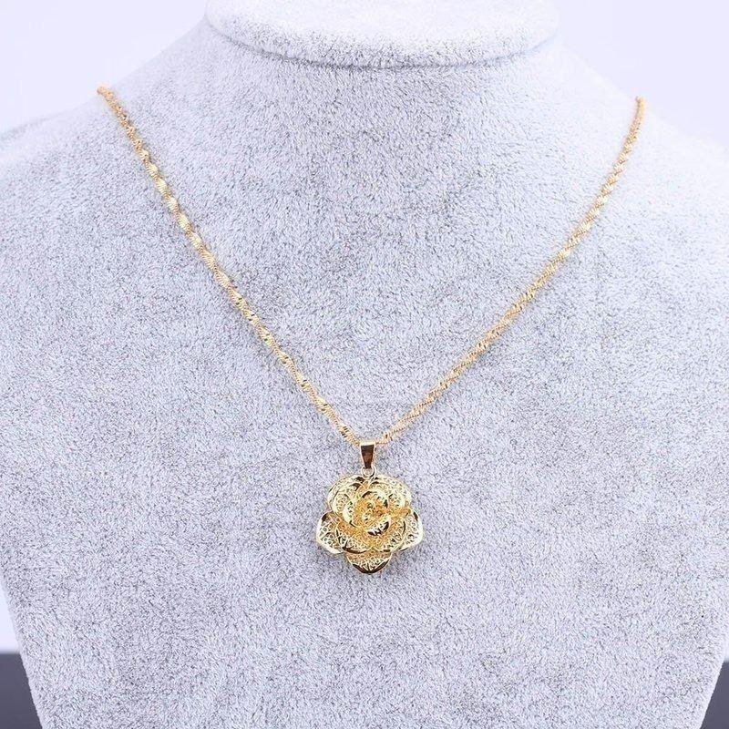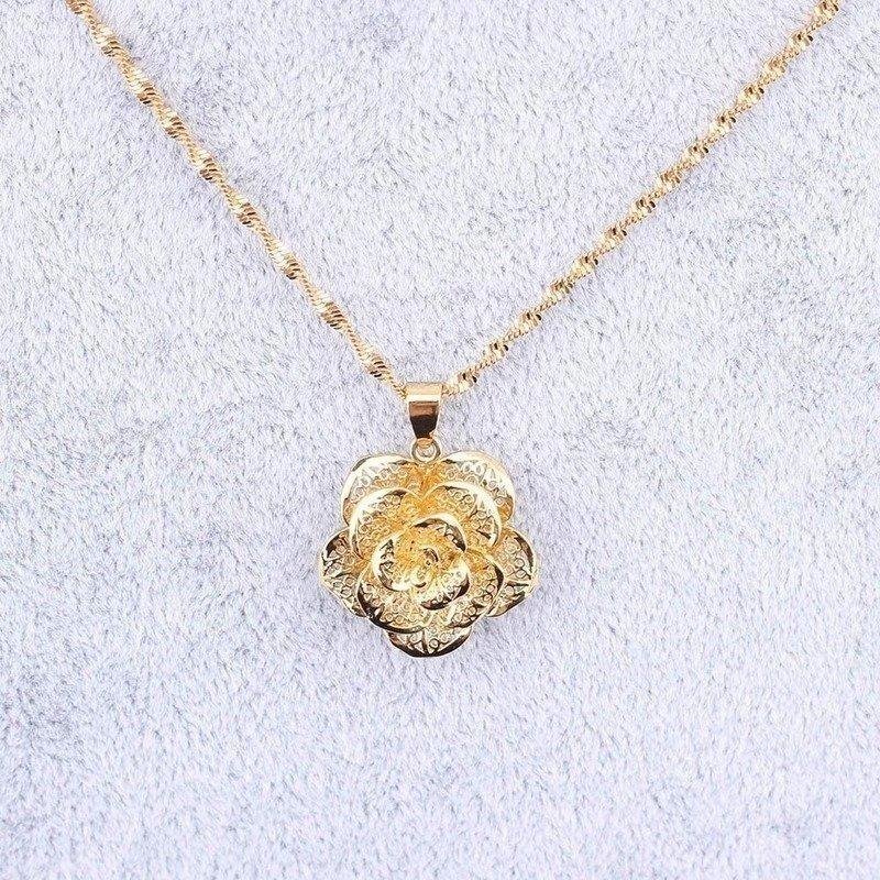 24K GF Simple Flower Necklace / Gold Pendant Gift for Anniversary