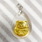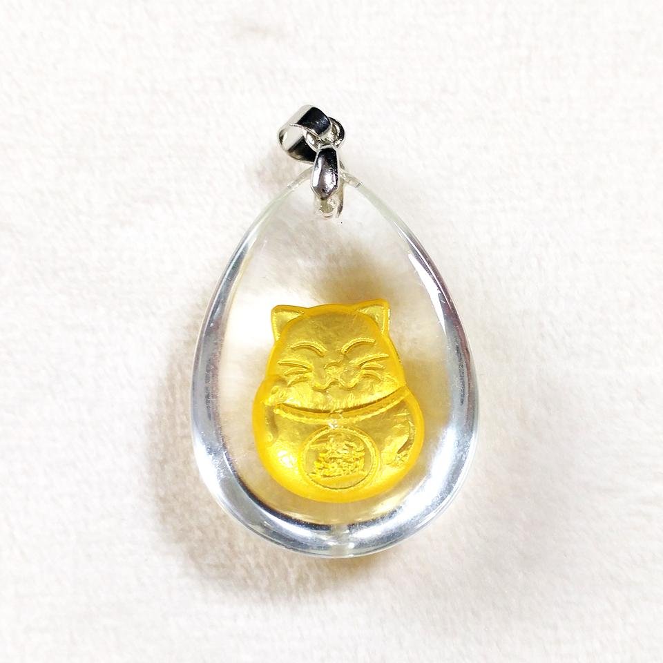 금으로 만든 복고양이가 들어있는 목걸이 입니다.
