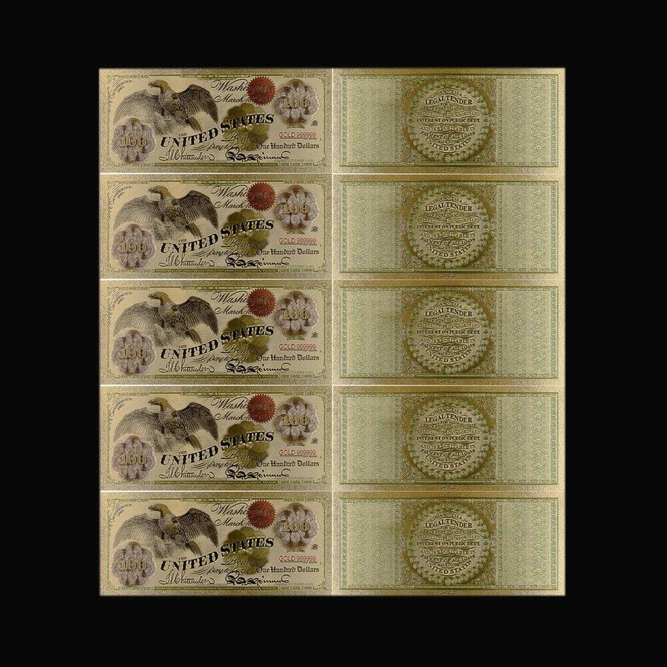 24K GP 1863년 금 100달러 기념 / 미국 황금 지폐