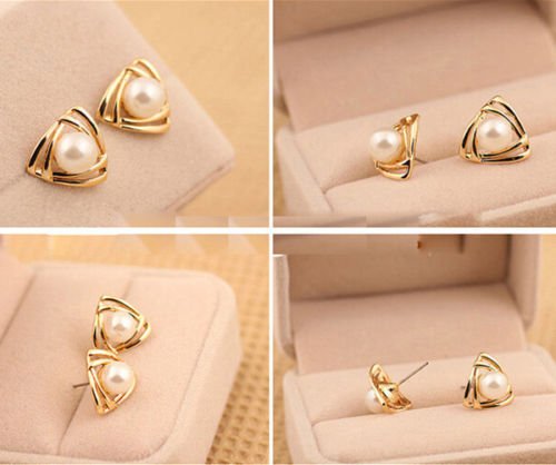 18K GP Gold Pearl Earrings / Fashion Women’s Gold Jewelry Gift