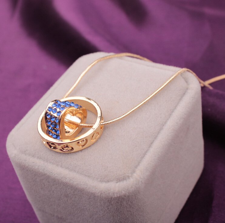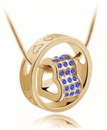 18K GP Circle Heart Necklace (Blue) / Crystal Women’s Line Stone Gift Heart