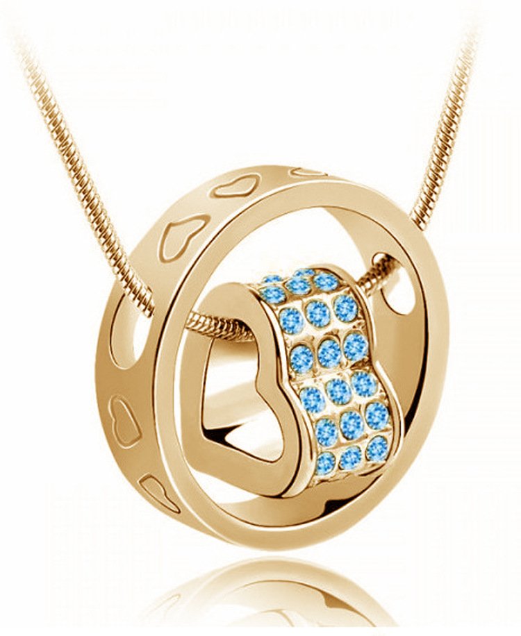 18K GP Circle Heart Necklace (Sky Blue) / Crystal Women’s Line Stone Gift Heart