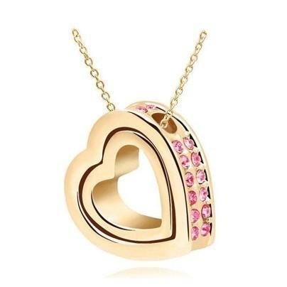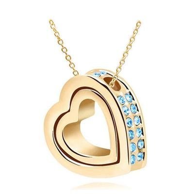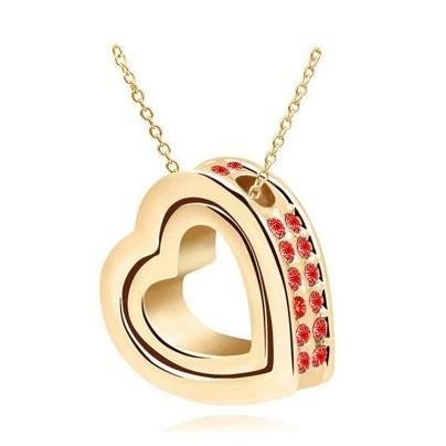 (Random Delivery) 18K GP Heart Necklace / Plated Crystal Layered Couple