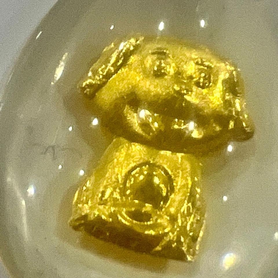 It is a necklace containing a dog made of gold.