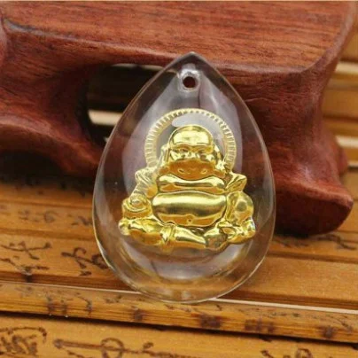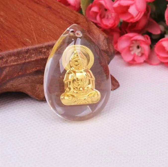 24K Pure Gold Avalokitesvara Necklace / Crystal Craft Gold Necklace Luxury Gift