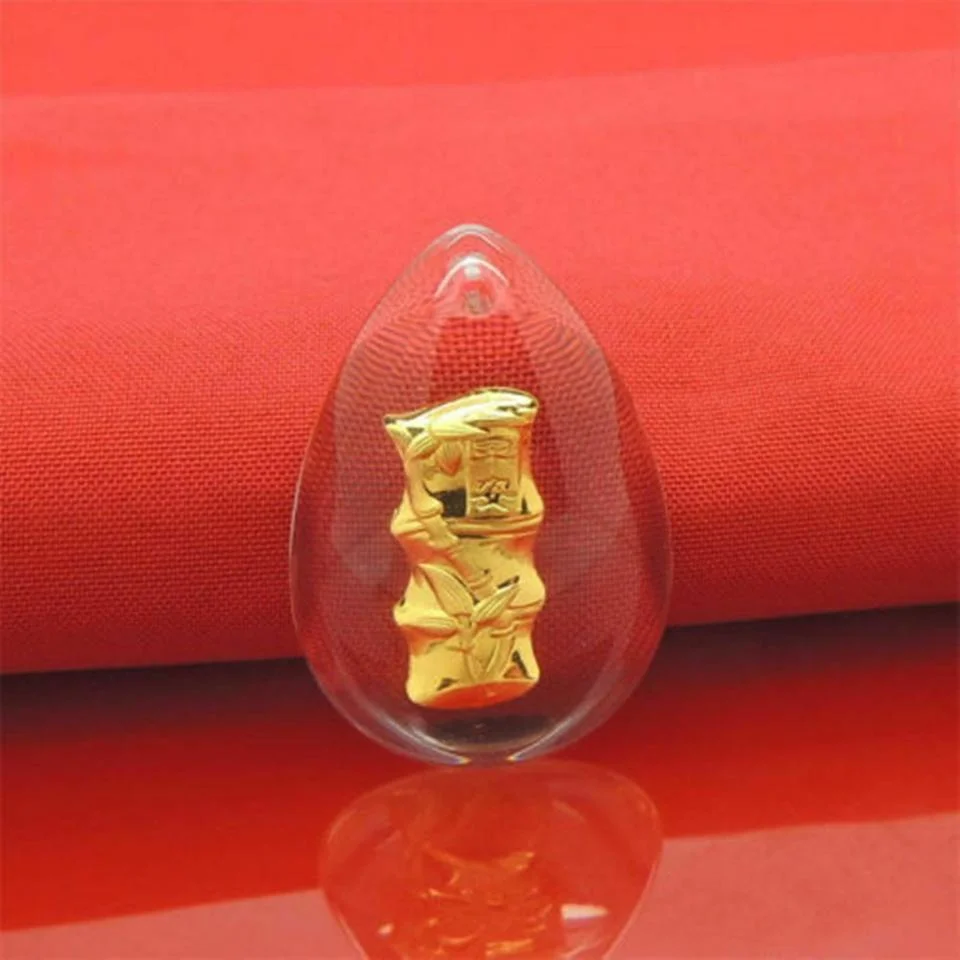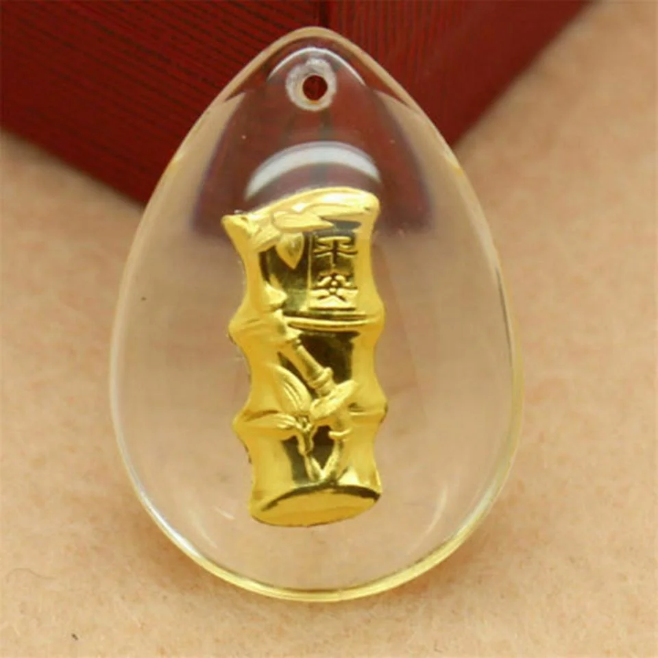 24K Pure Gold Bamboo Necklace / Natural Crystal Craft Golden Gift