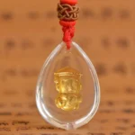 It’s a necklace with a gold statue carved on it.