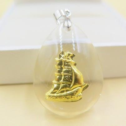 24K Pure Gold Ship Necklace / Natural Crystal Craft Golden Gift
