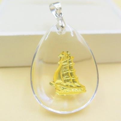 24K 순금 선박 목걸이 / 네추럴 크리스탈 공예 황금 선물
