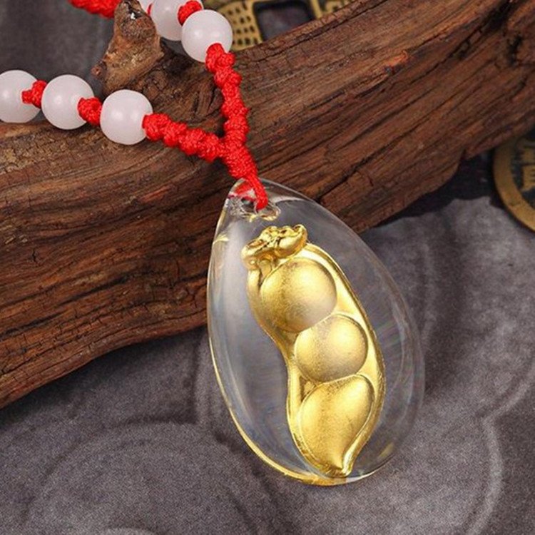 24K 순금 완두 목걸이 / 네추럴 크리스탈 공예 황금 선물
