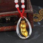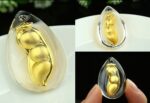 24K Pure Gold Pea Pendant Necklace / Natural Crystal Gold Craft Gift