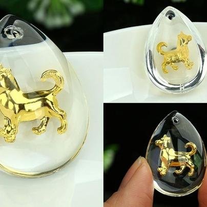 24K 순금 개 목걸이 / 크리스탈 공예 황금 고급 선물