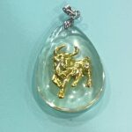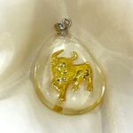 금으로 만든 황소가 들어있는 목걸이입니다.