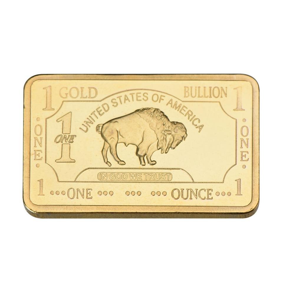 24K GP Buffalo 1 Ounce Gold Bar / Golden Collectible Commemorative