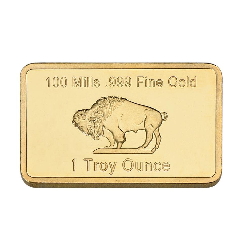 This is a plated gold bar with a 1 oz buffalo picture.