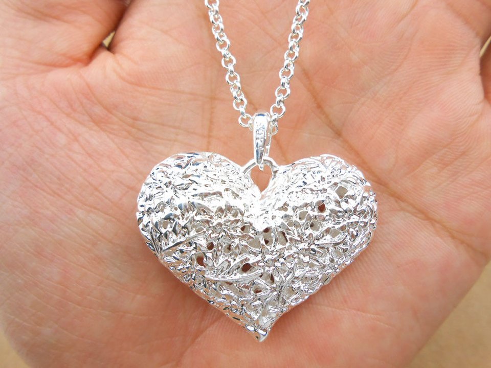 925 Silver Sterling Heart Necklace / Jewelry Pendant Accessory