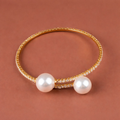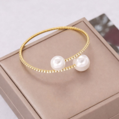 골드 커프 팔찌 인조 진주 큐빅 오픈형